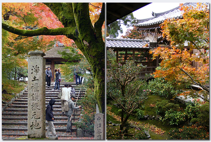 Zurück auf dem Philosophenweg laufen wir den bis zu seinem Endpunkt, dem Eingang des Eikando Tempels – Haupttempel der Jodo Schule, ein Topziel unter den Herbsttempeln und dementsprechend auch gut besucht.