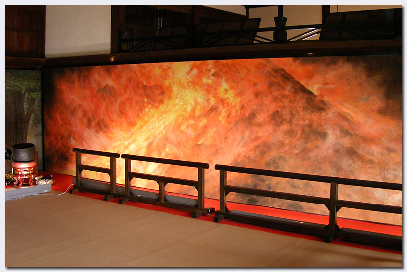 Dieses Lavagemälde kommt einer Lavatour mit Chris doch schon verdammt nah, man spürt quasi die Hitze, gefällt mir ausgezeichnet. Draußen auf dem großen Gartengelände überbieten sich derweil die Ahornbäume wieder mit den Herbstfarben, einen großen Teich gibt es auch noch, alles wunderbar.