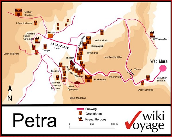 Eine Karte von Petra - nicht ideal aber die man hier verwenden darf da von wikivoyage: