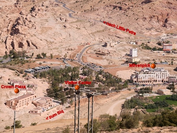 Habe ich mir gemacht - zeigt Wadi Musa und die Lage der für den Bericht wichtigen Punkte