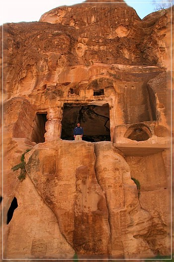 Ein Jordanier spricht uns an und stellt sich als Inspektor von Little Petra vor. Wir bekommen einige Informationen zu Gräbern und ihrer speziellen Verwendung.