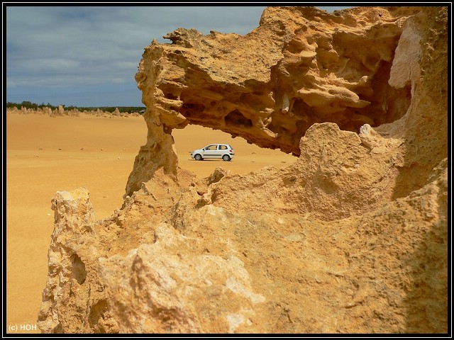Zum Abschluss des Tages wollen wir noch zur Sunset-Spot No.1 hier nach Red Bluff. Zumindest ist es für UNS der absolut beste Ort dafür, nirgends sonst leuchten die Felsen zum Sonnenuntergang roter und sind die Farben schöner als hier! Bereits auf dem Parkplatz, der sich auf riesigen Felsplatten direkt am Meer befindet, verzaubert uns diese Location hier ganz still und heimlich. Ob DAS der Zauber von Oz ist? Vielleicht kann das jeder für sich selbst entscheiden ... und da Bilder mehr als tausend Worte sagen halte ich jetzt mal meinen Mund und schiebe ein paar Bilder aus der separaten Kalbarri-Coast-Bildergalerie hier rein ... der Link dazu kommt allerdings erst Morgen.
