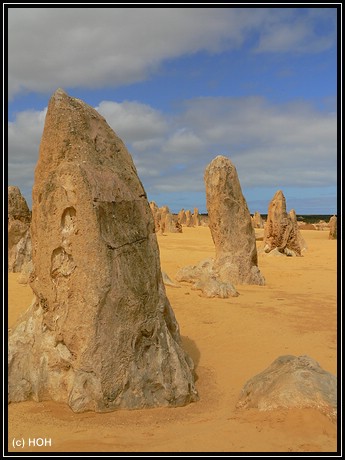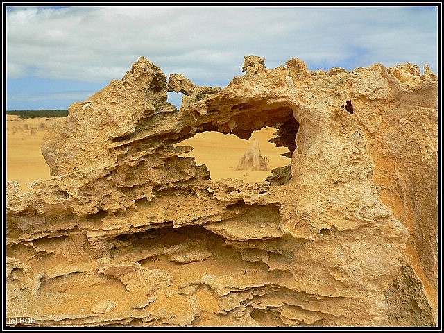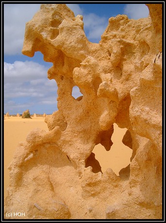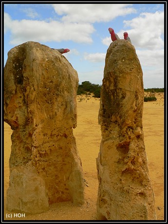 Wir gehen deshalb erstmal in Visitor Center (geöffnet täglich von 9 - 17h) und besorgen uns ein paar Prospekte, Karten und Infos. Außerdem frühstücken wir jetzt erst einmal in Ruhe ... bevor wir uns aufmachen in Richtung Hawk’s Head Lookout und Ross Graham Lookout. Auf unserem Weg die Ajana Kalbarri Road entlang springen uns mehrmals Kängurus knapp vors Auto, hier muss man echt höllisch aufpassen da einem die Sicht zur Seite durch 2 - 4 Meter hohe Büsche und Gestrüpp verdeckt wird. Zum Glück passiert aber wieder nichts, beide Parteien (also die Roos und wir) reagieren schnell genug und kommen mit dem Schrecken davon.