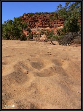 Kalbarri NPBereits um halb 6h sind wir schon wieder unterwegs, der frühe Vogel fängt ja bekanntlich den Wurm. Bis zum Örtchen Northampton, welches eine der ältesten Siedlungen von ganz Australien ist, passiert eigentlich nicht wirklich viel. Hier und da höppeln ein paar Kängurus am Straßenrand herum, zum Glück springen die aber nicht vor unser Auto. In Northampton biegen wir links ab, hier ist nämlich der Abzweig zur Port Gregory Road (im späteren Verlauf Georg Grey Road), welche an der Küste entlang direkt bis nach Kalbarri führt. Die Landschaft hier ist so früh am Morgen einmalig anzuschauen und wir sind fasziniert von den Farben der Natur ...
