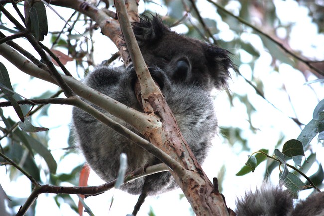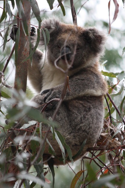 Nach einer äußerst ruhigen Nacht zwischen Koalas und Kängurus brechen wir heute Morgen früh auf. Zum Abschied tut uns der kleine Koala im Baum nebenan noch mal den Gefallen und lässt sich blicken. Es scheint in der Nacht geregnet zu haben, denn der kleine Kerl hat ganz nasse Öhrchen.