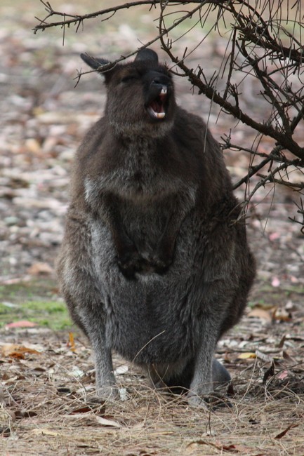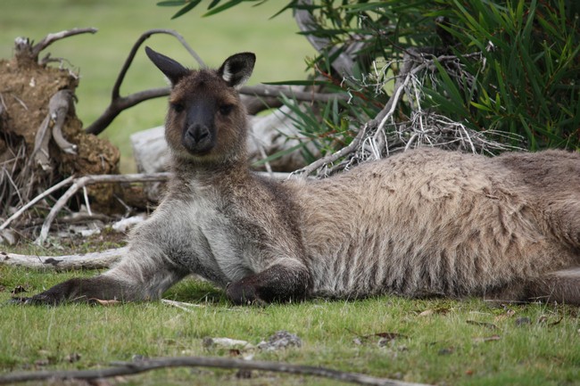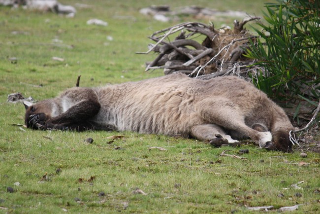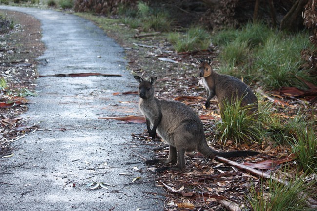 Wovon es hier nur so wimmelt sind allerdings Wallabys und Kängurus, auch ziemlich große Exemplare sind dabei. Allesamt scheinen jedoch so früh am Vormittag noch mächtig verschlafen zu sein.