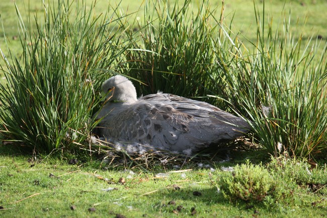 Nachdem wir im Visitor Center unseren Eintritt bezahlt haben, machen wir uns auf den Weg zum Platypus Waterholes Walk. Er führt zunächst über eine größere Wiese mit jeder Menge Hühnergänsen. Einige sitzen auf einer Art Nest, wobei ich mich frage, ob die tatsächlich jetzt im Herbst brüten und nicht im Frühling oder Sommer.