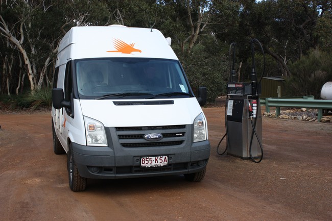 Nachdem wir wieder am Auto angekommen sind, fahren wir zunächst eine Tankstelle an, denn unser Tank leert sich verdächtig. Die Dieselpreise auf Kangaroo Island sind ohnehin schon hoch, aber hier am äußersten Westteil der Insel natürlich umso mehr. Wir hätten wohl besser in Penneshaw getankt, aber nun ist es nicht mehr zu ändern, denn wir wollen nicht riskieren, dass der Sprit nicht reicht.