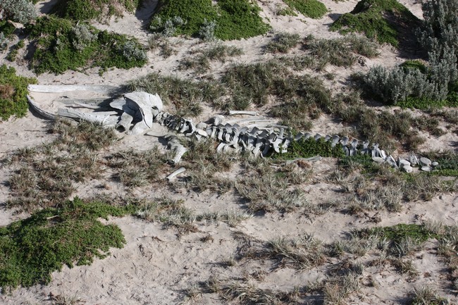 Vom Steg aus kann man auch das Skelett eines jungen Buckelwals erblicken. Eine Infotafel verrät uns, dass dieser bei einem Sturm vor vielen Jahren hier gestrandet ist.