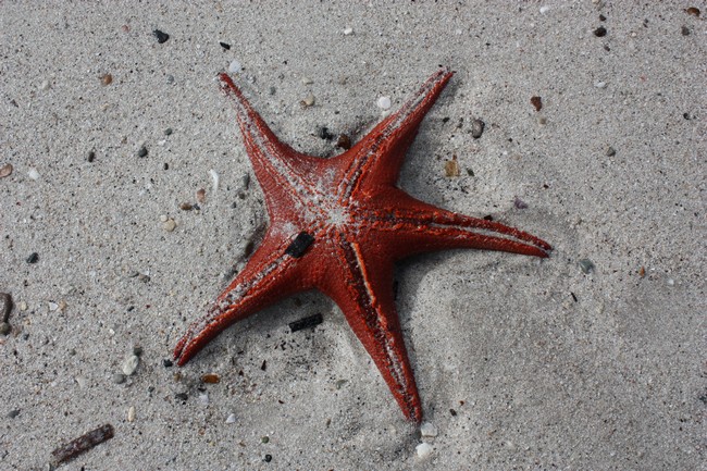 Erstaunlicherweise ist an der Emu Bay im Gegensatz zur Seal Bay nicht eine Welle zu sehen. Am Strand liegen allerhand interessante Muscheln, Schneckenhäuser und gestrandete Seesterne unterschiedlicher Farben herum. Bei letzteren kann ich mal wieder nicht anders und werfe jeden zurück ins Wasser, der noch nicht gänzlich ausgetrocknet zu sein scheint, auch wenn es vermutlich zu spät zu einer Rettung ist.