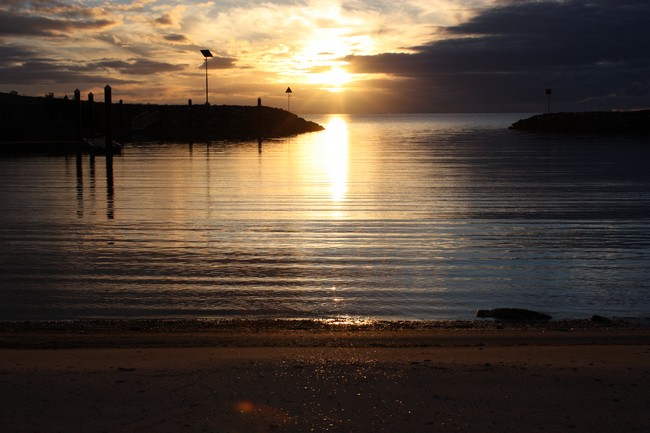 Zurück in Penneshaw fangen wir so langsam an mit Koffer packen und putzen den Camper noch etwas, denn morgen müssen wir ihn schon wieder abgeben. Als es dämmert unternehme ich noch einen kleinen Spaziergang zur nahegelegenen Bucht und genieße den Sonnenuntergang in vollen Zügen.