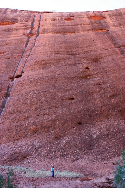 Wir haben den Ayers Rock auch zu Fuß umrundet. Stimmt, der von weiten so glatte Felsen, hat dann ganz viele Löcher, Rillen, Risse usw.