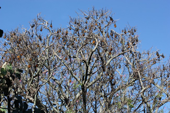 Wir hatten uns zunächst anhand Deiner damals geposteten Karte und Beschreibung orientiert und sind schnurstracks auf den Palm Grove Tree zugesteuert. Noch bevor wir den erreicht oder irgendetwas gerochen hatten, sind schon die ersten Flughunde über uns geflogen. Ein paar Meter weiter waren die Bäume voll von den Tierchen. :)