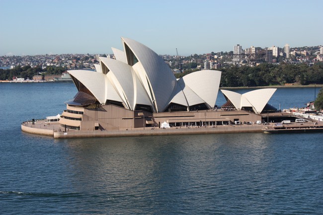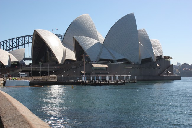 Bald kommt die Oper in Sicht, die ich gestern schon aus dem Flugzeug und vorher bereits unzählige Male im Fernsehen oder auf Bildern gesehen hatte. Wir schauen uns die Oper ausgiebig von außen an und sind überrascht, dass es sich bei den weißen Kuppeln gar nicht um nur ein, sondern um mehrere Gebäude handelt. Vom Opernhaus aus hat man auch einen guten Blick auf den Circular Quay und die Harbour Bridge. Ich liebe Sydney jetzt schon.