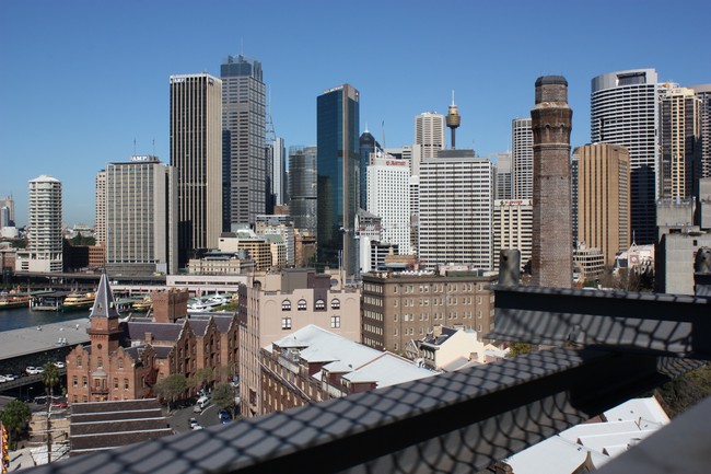 Downtown Sydney von der Harbour Bridge aus gesehen