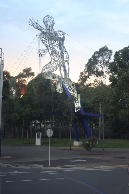Unser Busfahrer ist so nett und macht mit uns einen kleinen Abstecher in das Olympische Dorf von der Olympiade im Jahr 2000. Man sieht noch auf der Straße überall die einzeichnete blaue Linie vom Marathon, sowie diverse Sportstätten, das Stadion und die Wohnungen, in denen die Sportler gelebt haben.
