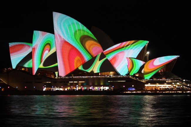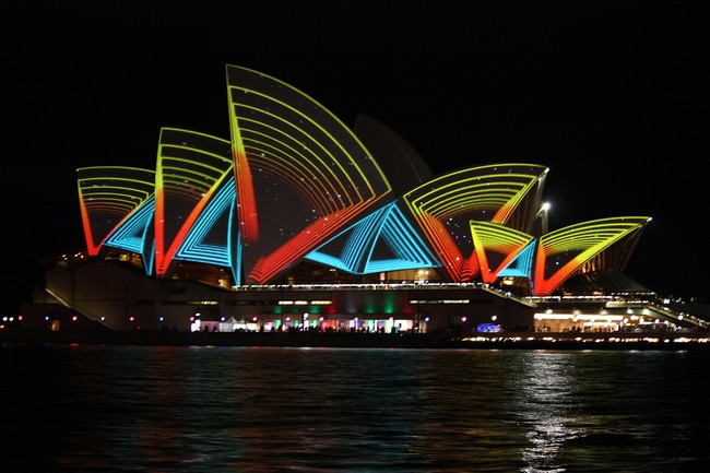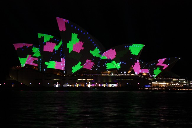 Schließlich fahren wir zurück nach Sydney. Der Reiseleiter erzählt auf der Fahrt, dass zur Zeit ein Festival in Sydney stattfindet, bei dem die Oper in bunten Farben angestrahlt wird. Davon hatte ich zwar schon Bilder gesehen, aber ich wusste nicht, dass das Festival ausgerechnet jetzt stattfindet. Dann ist wohl klar, was wir heute Abend machen werden. :D