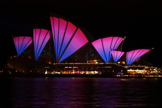 Tolle Bilder von Sydney bei Nacht, diese farbige Beleuchtung ist wirklich faszinierend...