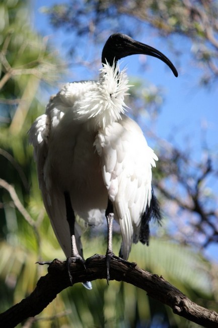 Ich könnte ewig hier bleiben, aber schließlich warten auch noch allerhand andere Attraktionen auf uns. Zunächst einmal laufen wir weiter durch den Park, denn es soll hier auch Kakadus geben. Kurze Zeit später entdecken wir einen großen Baum, der von Kakadus nur so bevölkert wird, außerdem stolzieren einige Ibisse umher. Die Kakadus sind gar nicht scheu und man kann richtig nah an sie heran.