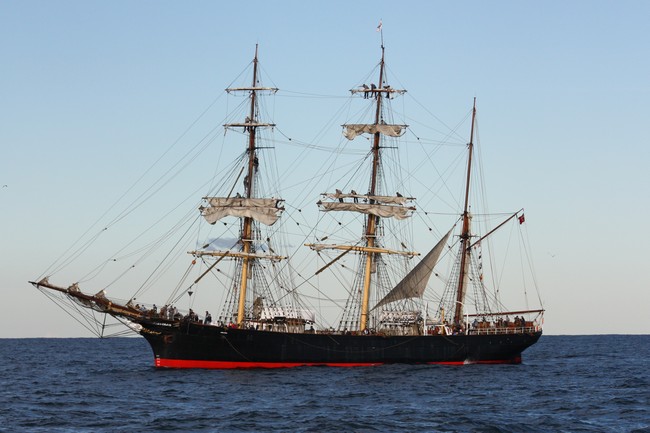 Wir besorgen uns noch eine Kleinigkeit zum Mittagessen und begeben uns dann auf das Schiff. Ich setze mich ganz vorne auf eine Bank. Langsam fahren wir vorbei an unzähligen kleinen Segelbooten hinaus aus der Bucht. Viele Einheimische scheinen jetzt am Wochenende das schöne Wetter für eine Segelbootfahrt zu nutzen. Als wir schon auf dem offenen Meer sind, begegnet uns ein weiterer schöner und richtig großer Segler.