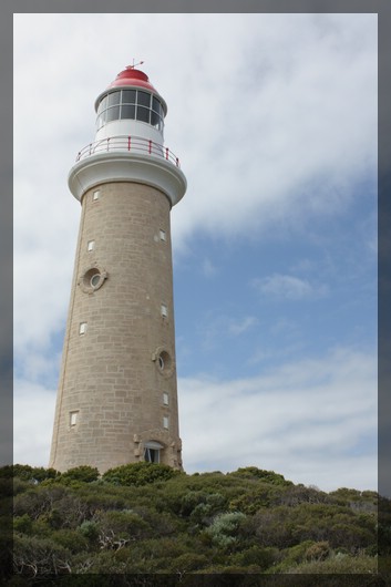 Einen nicht zu unterschätzenden Vorteil ziehen die durch den Abstecher nach Kingscote unfreiwillig verlorenen gut zweieinhalb Stunden nach sich: Als wir uns wieder der Südwestecke der Insel nähern, reißt die über der gesamten Insel hängende Wolkendecke genau dort ein wenig auf. Wir fahren am Visitor Centre des Flinders Chase National Park vorbei zum Cape du Couedic. Wir parken am schönen Leuchtturm und laufen den gut einen Kilometer langen Weg zur Steilküste. Hier gibt es einige Aussichtspunkte von denen man aus luftiger Höhe die faul auf den Felsplatten am Meer liegenden Seals beobachten kann. Im Unterschied zu gestern handelt es sich dabei nicht um Seelöwen, sondern um Seebären. Ein entscheidender Unterschied ist, dass Seebären ein dichtes Unterfell besitzen und somit im Wasser nicht nass werden. Dafür wird ihnen an Land schnell heiß, so dass die träge herumliegenden Tiere häufiger zur Abkühlung ein Bad im Meer nehmen. Dabei beobachten wir die Tiere eine Weile lang und machen uns dann auf zum Admiral's Arch.