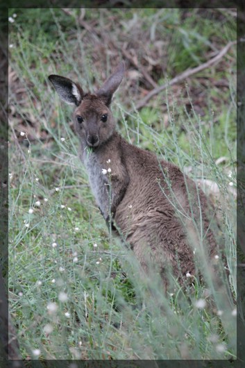 Bei dem letzten Bild der vergangenen Berichtetappe habe ich aufgrund der schmalen Gesichtsform auf ein Wallaby geschlossen - ich würde aber nicht mein Leben drauf verwetten.