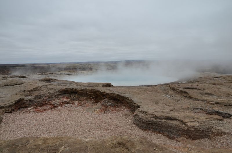 Am Morgen verabschieden wir uns von Hildur und ihrer Familie bei der wir uns vier Tage lang sehr wohl gefühlt haben. In kleinen Schritten beginnen wir nun unsere Umrundung der Insel. Zuerst steht dabei die Vervollständigung des Goldenen Kreises an. Bei grauen Wolken und teils dichtem Nebel lassen wir Þingvellir links liegen und fahren bis zum Geothermalgebiet Geysir.