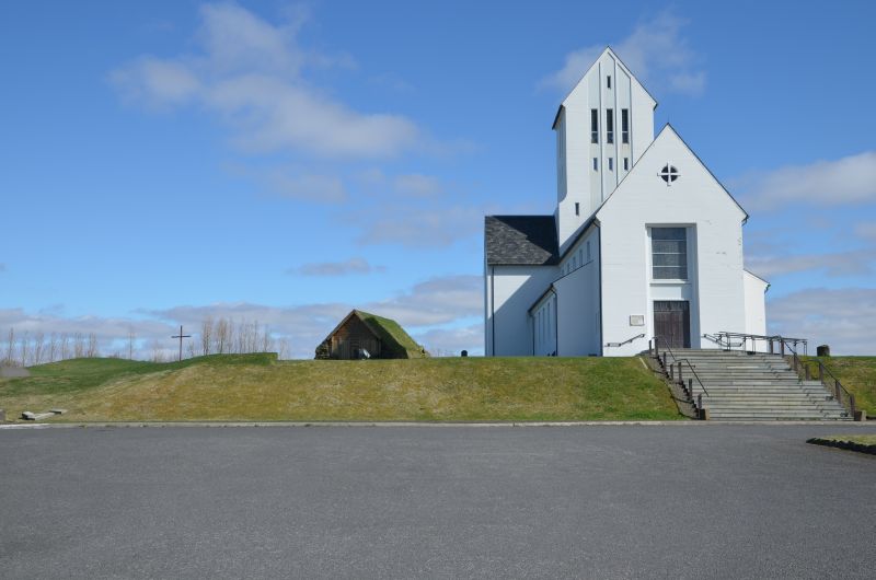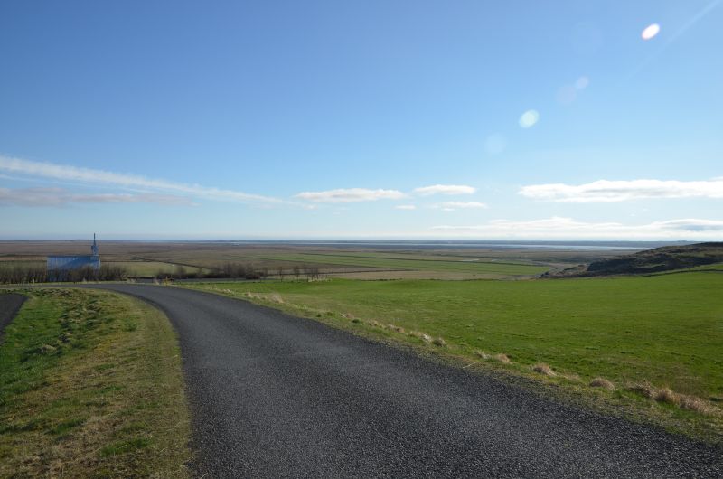 Die Weiterfahrt in Richtung Selfoss wird durch immer besser werdendes Wetter gekennzeichnet, am ehemaligen Bischofssitz Skálholt strahlt die Sonne vom blauen Himmel. Skálholt ist längst nicht mehr so bedeutend wie im Mittelalter, aber die Skálholtsdómkirkja ist verhältnismäßig groß und hat tolle bunte Fenster, die ein schönes Farbenspiel ins Innere projizieren.