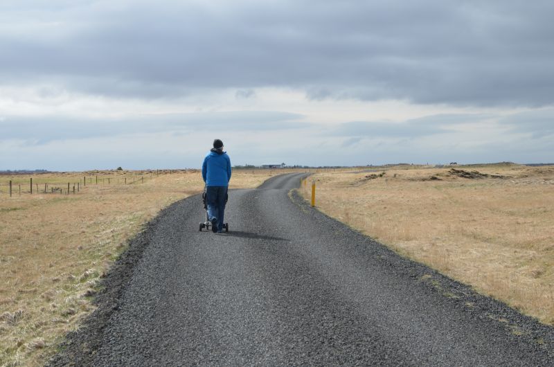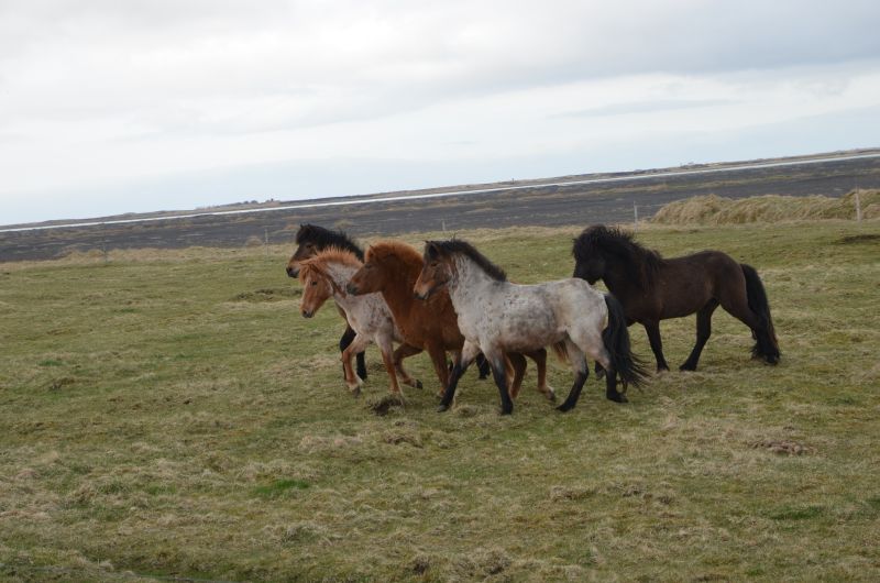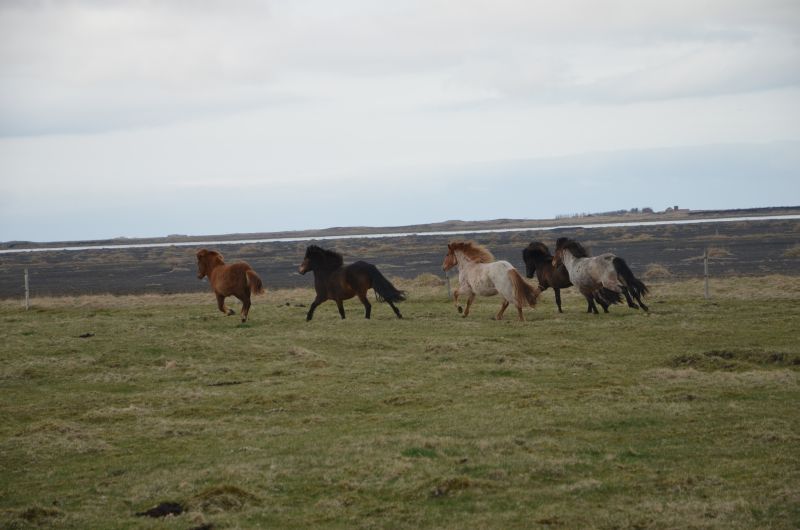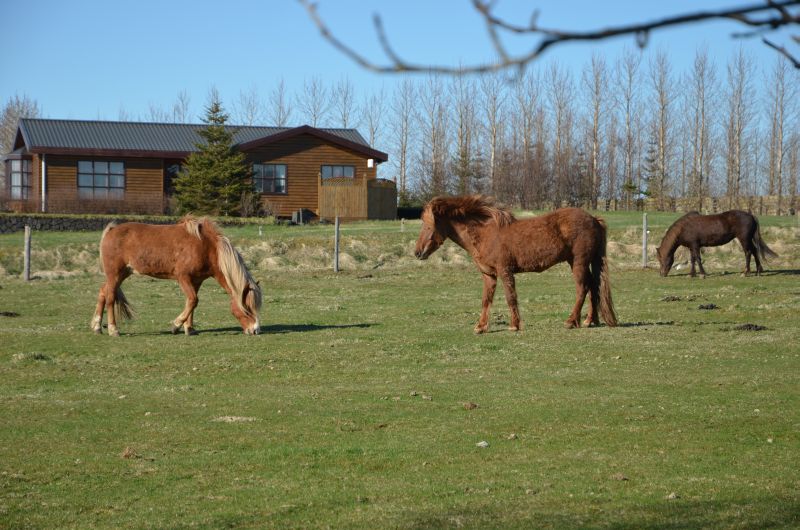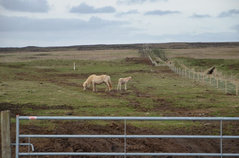 Unsere nächste Übernachtung ist in Kálfholt, dort sind wir für zwei Tage auf einem Pferdehof (endlich Islandpferde) mit angeschlossenem Gästehaus – einsam gelegen, 15 Kilometer östlich von Selfoss und mit tollem Ausblick auf das weite Land. Nach der kurzen Begrüßung packen wir unseren müden Krieger nochmal in den Kinderwagen und gehen auf einen einstündigen sehr windigen und sonnenreichen Spaziergang. Dann folgt das Abendprogramm mit einer extra Portion Spielzeit nach der längeren Fahrt heute.