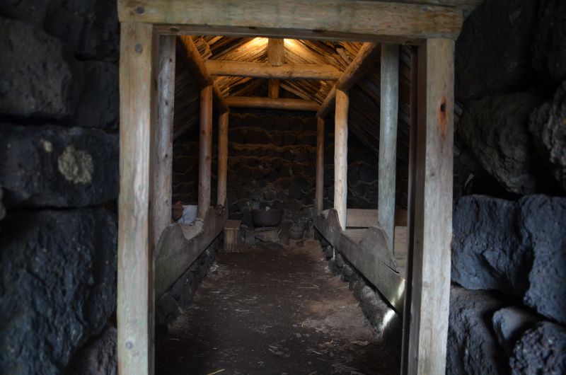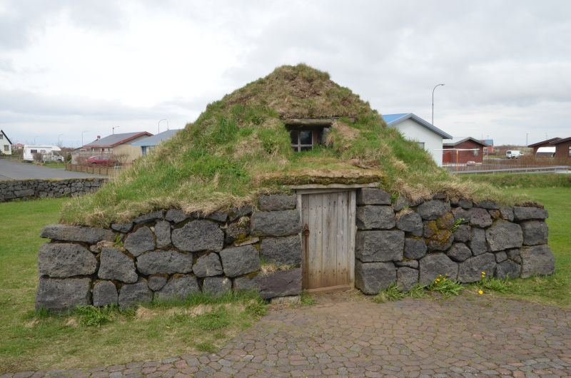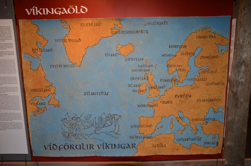 Zurück auf der Ringstraße besuchen wir in Hvolsvöllur das Saga-Zentrum, ein kleines Museum das sich mit einer der bekanntesten isländischen Sagas beschäftigt. Die Njáls Saga aus dem 13. Jahrhundert beschreibt die Fehde zwischen zwei Familien in Süd-island und ist die längste isländiche Saga und wird inzwischen als Weltliteratur anerkannt. Inhaltlich erinnert es an Daily Soaps. Das Museum stellt die Saga dar und ordnet sie in die damaligen Lebensverhältnisse ein. Es ist ganz nett gemacht und Simon lässt sich breitwillig als kleiner Wikinger verkleiden.