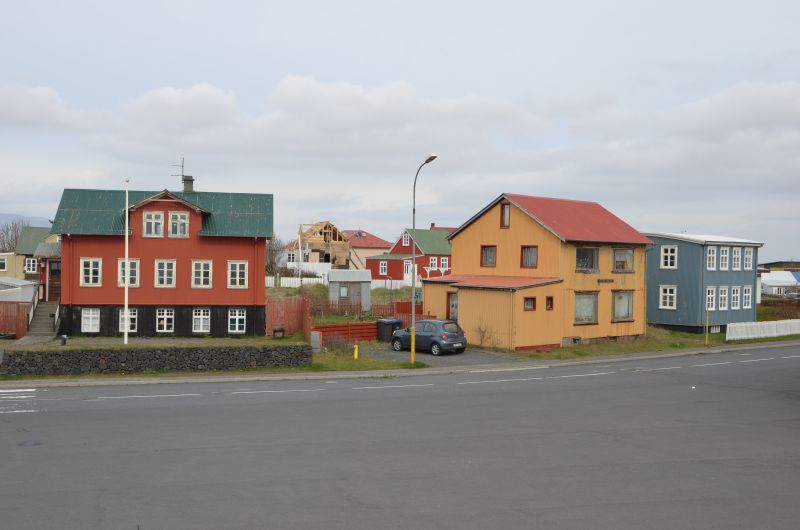 Weiter an der Küste entlang fahren wir bis Þorlákshöfn, einer eher tristen Hafenstadt mit einer architektonisch interessanten Kirche. Für eine Strandwanderung ist es uns eindeutig zu windig. Da Simon weiter fleißig die Fahrt verschläft, fahren wir wieder zurück und stoppen in Eyrarbakki, ebenfalls einem verschlafenen Fischernest, dass seine frühere Bedeutung als Hafenstadt an Þorlákshöfn verloren hat. Die Stadt hat im Kern einige alte Häuser, teilweise wieder schön hergerichtet und verströmt den Charme vergangener Zeiten.