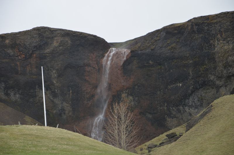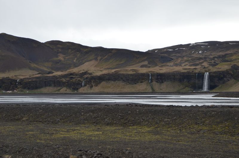 Im Museum befindet sich auch die Tourist-Information und wir erfahren, dass die Ringstraße ab 14 Uhr ein Stück vor uns aufgrund des Sturms gesperrt werden wird und man legt uns nahe zügig loszufahren. Den Seljalandsfoss – und die vielen anderen Wasserfälle am Hang – bewundern wir nur von der Straße aus und auch das Informationszentrum zum in den Wolken verborgenen Eyjafallajökull lassen wir rechts liegen. Sollte das Wetter morgen besser werden, können wir nochmal dorthin.