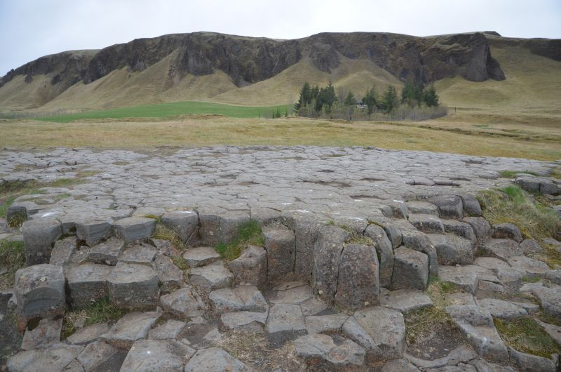 Zurück Richtung Ort klappern wir die Sehenswürdigkeiten von Klaustur ab. Zuerst geht es zu Kirkjugólf, einer willkürlich auf der Wiese vorzufindenden Fläche mit Basaltstelen, die aussehen als würde es sich um einen Kirchenboden handeln. Auf der Straße dorthin nehmen wir auch noch zwei kleine Wasserfälle mit.