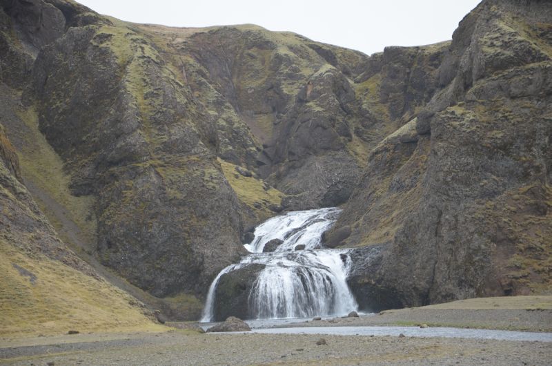Am Seljalandsfoss gibt es die Besonderheit, dass man auf einem Rundweg hinter dem Fall hergehen kann. Eine kalte und nasse, aber auf jeden Fall lohnenswerte Angelegenheit. Neben dem Seljalandsfoss geht es an der Steilwand einen kleinen Weg entlang zu weiteren Fällen, ganz am Ende der Gljúfurárfoss der sich in einem kleinen Canyon versteckt und sich nicht in voller Pracht präsentieren möchte. Am Ende kommt sogar die Sonne heraus und Simon gefallen die Wasserfälle auch.