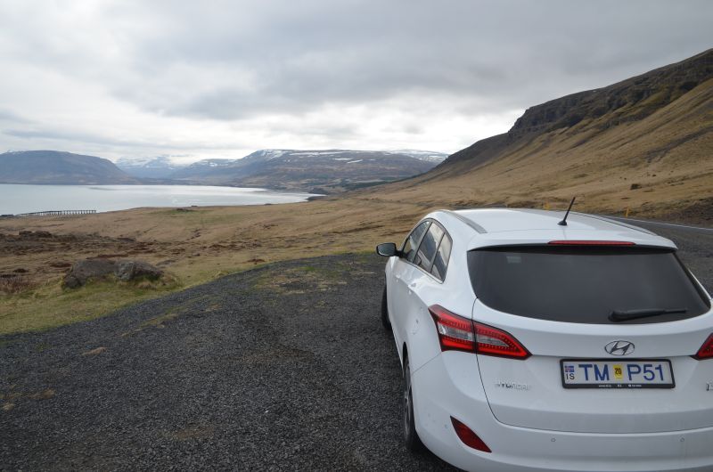 Auf der anderen Seite marschieren wir wieder runter und durch die Tiefebene vorbei an der Þingvallakirkja geht es zurück zum Auto. Das hat uns sehr gut gefallen, vor allem die durch das Wetter gegebenen tollen Ausblicke auf den See und die schneebedeckten Berge. Und als gegen Mittag alle Reisebusse wieder weg waren, die auf ihrer Schnelltour über den Golden Circle unterwegs sind, war es trotz Samstag angenehm leer. Simon darf dann auf einer Bank noch länger spielen und essen.