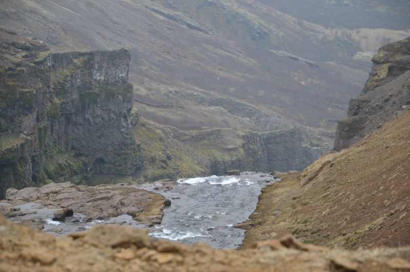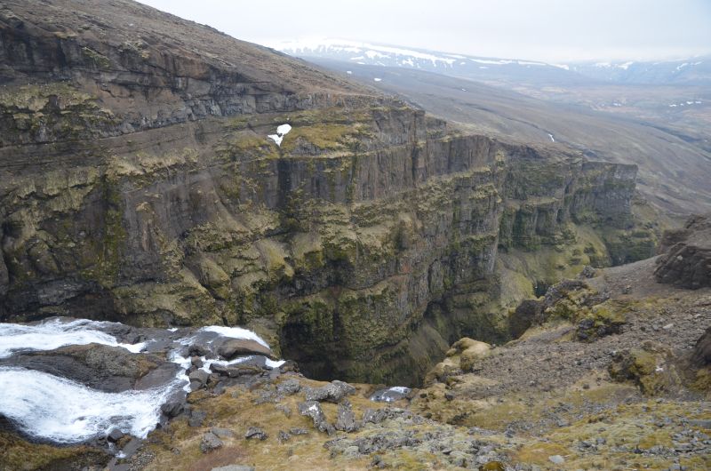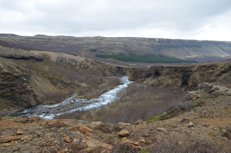 Aussichtspunkt Richtung Ebene, links die Allmanagjá Schlucht