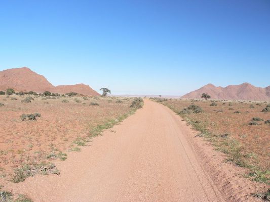 Die nächsten drei Nächte haben wir nicht vorgebucht, da wir uns vor Ort erst erkundigen wollten, ob die landschaftlich schöne Straße von Rosh Pinah nach Aus passierbar ist. Von unseren Gastgebern haben wir erfahren, dass die Brücke über den Löwenfluss wahrscheinlich nach den Regenfällen gesperrt ist, aber da sie es auch nur über Dritte gehört haben, sollen wir in Aus nach aktuellen Informationen fragen.