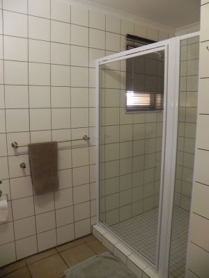 Wir sehen weitere Vertreter der heute schon erspähten Tierarten und erreichen gegen 12:30 h das Camp. Wir erhalten Riverfrontchalet Nr. 4. Das Preis-Leistungs-Verhältnis (1.120 Rand/Nacht) stimmt in unseren Augen, auch wenn wir solch luxuriöse Unterkunft (für ein staatliches Restcamp) nicht benötigen.