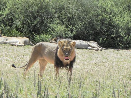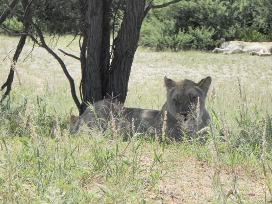 Als sie weiterzieht, verfolgen wir sie und werden belohnt: sie trifft auf eine weitere Löwin und kurz darauf kommt ein Männchen hinzu.