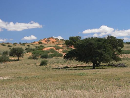Es geht auf und ab durch die herrliche Dünenlandschaft. Die Dünen sind nicht so rot, wie ich sie mir vorgestellt habe, sondern – sicher aufgrund der Regenzeit – teilweise sogar recht grün.