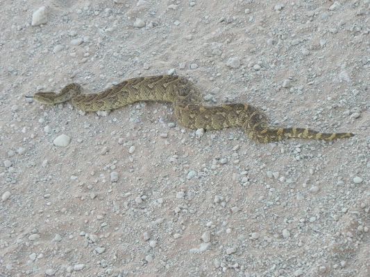 Auch eine Puffotter kreuzt wieder unseren Weg. So viele Schlangen, wie wir im KTP gesehen haben, hatten wir in den gesamten anderen Afrikaurlauben nicht gesichtet.