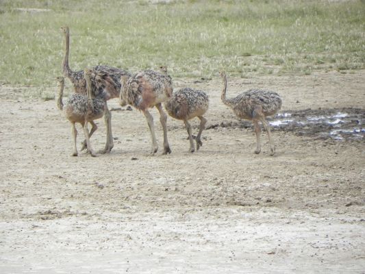 Der Schlenker zum Wasserloch Marie se Gat wird mit einer Straußenfamilie, Kuhantilopen und einem Gleitaar belohnt.