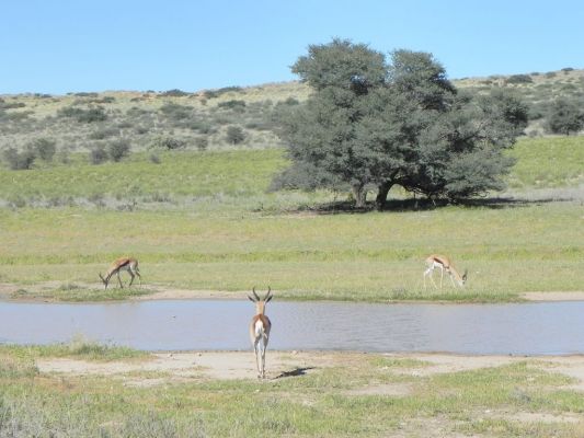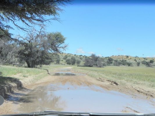 Die Anfahrt durch die Dünenlandschaft ist ein Erlebnis, das man sich nicht entgehen lassen sollte, gerade wenn man noch keine Erfahrung mit 4x4-Fahren hat. Das Camp selbst ist einfacher als die anderen Wilderness Camps, die wir kennen gelernt haben, was bei schönem Wetter kein Problem ist. Bei Regen ist der Aufenthalt weniger angenehm, da die Zimmer so klein sind, dass man dort nicht unbedingt die Zeit totschlagen möchte. Die Gemeinschaftsküche ist zwar groß, aber wenn die anderen Gäste einem nicht so sympathisch sind … Wobei wir in der Beziehung Glück gehabt haben: wir hatten nette Gespräche mit der Familie aus Kapstadt und dem ältere Pärchen aus Wilderness . Was in unseren Augen auch ein Minuspunkt ist: man kann nur zwischen einer kleinen (ca. 15 km) oder einer sehr ausgedehnten Pirschfahrt (über die Dünenroad zum Nossob Camp zurück nach Bitterpan) wählen. Für eine Nacht ist das in Ordnung, aber mehr Nächte würden wir nicht bleiben wollen.