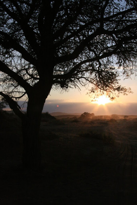 Der Tag begann grausam, den um 4 Uhr 15 läutete der Wecker. Grund für diese Qualerei lag an dem frühen Sonnenaufgang in Namibia. Als Besucher des Sesriem-Camps durfte man eine Stunde vor dem Sonnenaufgang in den Park fahren, um dann Richtung Dünen zu hetzen. (Was sich normalerweise nicht ausgeht). So beschränkte sich das Frühstück und die Morgenwäsche auf ein Minimum und um 5:15 reihten wir uns vor dem Parktor ein. Dort wurde von einem Angestellten in Ruhe die Autonummer notiert und das Permit gesichtet.