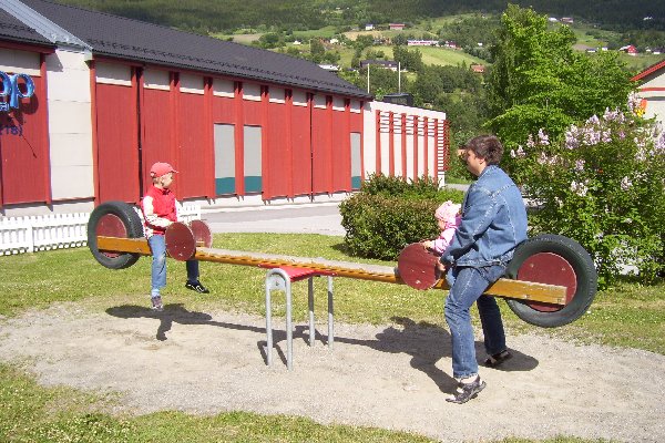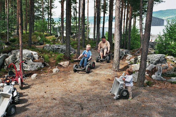 Eigentlich hatten wir ja genug von der Fahrerei heute, daher blätterte Andreas im ADAC-Campingführer und fand auch recht schnell einen Platz in Øyer, der eine schöne Lage und vor allem einen großen Spielplatz versprach. Den steuerten wir an und wurden nicht enttäuscht.