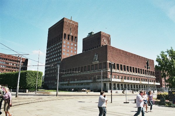 An der Rezeption des Campingplatzes kauften wir 24-Stunden-Tickets für Bus, Bahn und Fähre und gingen hinüber zur Bushaltestelle. Pünktlich um 11:48 Uhr kam der Bus Nr. 32, mit dem wir bis ins Zentrum von Oslo hätten fahren können. Wir hatten aber den Hinweis bekommen, dass wir wesentlich schneller wären, wenn wir in Røa T in die U-Bahn umsteigen würden, also stiegen wir dort aus dem Bus aus. Leider mussten wir ein paar Minuten nach der U-Bahn Station suchen und verpassten dadurch unseren Anschluss. Wir warteten auf die nächste Bahn, mit der wir bis zum Nationaltheater fuhren. Zeitlich hatten wir gegenüber dem Bus weder etwas gewonnen noch verloren. Wir orientierten uns kurz, Lisa bekam auf einer Parkbank gleich noch eine frische Windel, dann liefen wir zum Hafen.