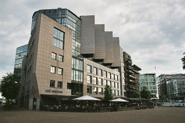 Dann gingen wir durch den Park und eine Runde um das Schloß herum. Der Himmel klarte zusehends auf und so kam uns die Idee, zum Abendessen in ein Restaurant zu gehen bzw. einen schönen Freisitz zu suchen. Wir liefen hinunter nach Aker Brygge, einem sehr schön restaurierten Hafenviertel mit jeder Menge Geschäften und Restaurants.
