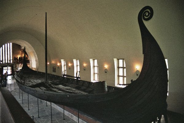 Hier war Fridtjof Nansens Expeditionsschiff, welches auf insgesamt drei Expeditionen zum Nord- und Südpol genutzt wurde, an Land gebracht und ein Museum mit sehr interessanter Ausstellung drum herum gebaut worden. Wir besichtigten ausgiebig das Schiff und besonders Vincent war ganz begeistert davon. Anschließend war es bereits Zeit zum Mittagessen, daher kauften wir am Kiosk nebenan zwei Hot Dogs und zweimal Fish & Chips für insgesamt mehr als 200 NOK. Nicht unbedingt günstig, aber wenigstens wurden wir diesmal alle satt… Wir warfen dann einen kurzen Blick in das gegenüberliegende Kontiki- und Ra-Museum, nutzten jedoch nur rasch die Toilette und liefen dann zum Wikingerschiff-Museum, das Vincent weit mehr interessierte.