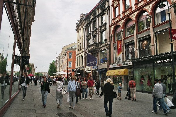 Am Rådhusbrygge angekommen, bummelten wir kurz durch einige Souvenirshops und lenkten dann unsere Schritte zur Karl-Johans-Gate, der Hauptgeschäftsstraße von Oslo.
