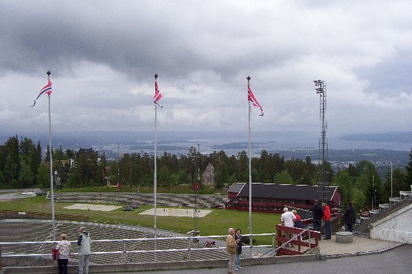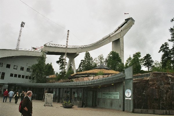 Am Holmenkollen sahen wir uns die große Skisprungschanze an, die für die Nordische Ski-WM 2011 einer moderneren Anlage weichen soll. Im Gegensatz zu den Schanzen in Lillehammer ist die Holmenkollenschanze nicht an den Berg gelehnt, sondern steht frei auf dem Gipfel. Dann bummelten wir ein wenig durch den Souvenirshop und kauften für Lisa ein niedliches Elch-Kissen, das sie auch gleich in ihr Herz schloss. Auch den singenden Elch entdeckten wir hier wieder, aber zu einem wesentlich höheren Preis, als wir im Campingplatz-Shop bezahlt hatten. Wir schauten uns noch den Skisimulator von außen an und linsten kurz ins Skimuseum und dessen Shop hinein.